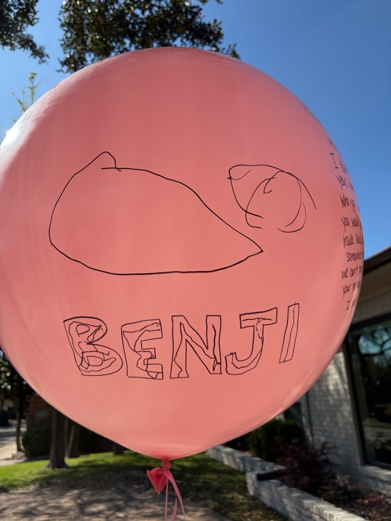 I had too much trust in your brother to hold the string of the balloon before letting it go, but the quickness of his release left me giggling while we watched your balloon go up and up and up into a crystal clear sky. This was the first year we could watch it for more than five minutes and still see it. What a cool thing to witness!