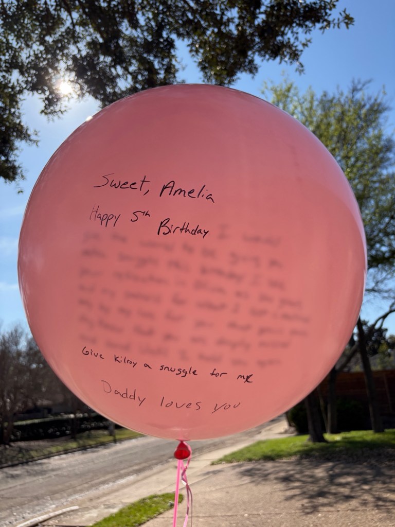 This afternoon we did what we always do. We sent a balloon full of messages to you! Olivia is too little to understand much more than the fact that there’s a balloon to play with. And Benjamin found it difficult to understand why his big sister is in the stars, but loved that you share the same last name. For the first time I could see how this tradition will have a profound impact on who your brother and sister become as they grow up. In five years this tradition has evolved with our family. I can imagine the evolution of the next five years and beyond as they truly learn the meaning of March 8th.