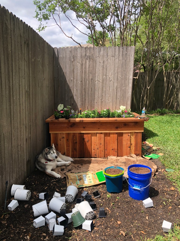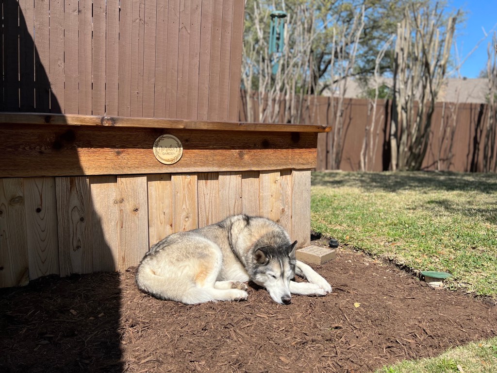Just yesterday we prepped the flower bed for new flowers and seedlings to start the second season of her garden. Kilroy seems to love this spot. I can’t wait to see how this season of the garden turns out.