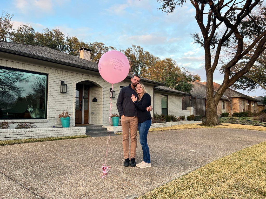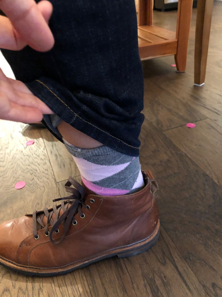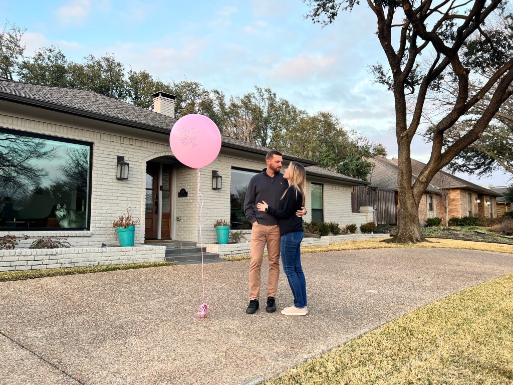 Pink confetti! I will never forget the moment we burst the balloon and saw the confetti.