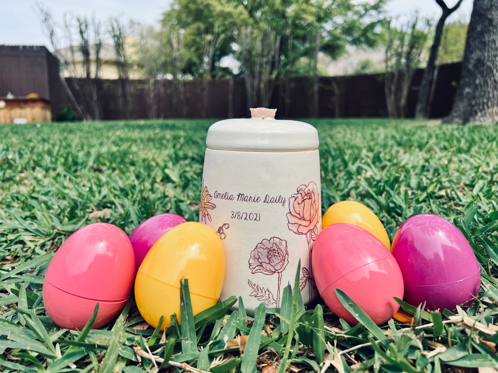 I imagine if you were here some of our family members would be here with us, too, and this holiday would look a lot different. They’d want to see you on your first Easter dressed in your pretty little Easter dress. They’d want to spoil you with your first Easter basket and see your eyes light up in wonder…