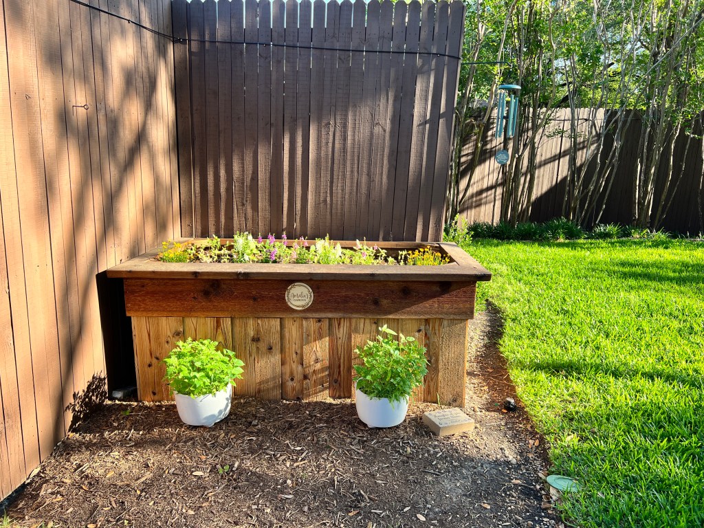 Today is August 20th, 2022 and it feels wonderful outside at a “cool” 82 degrees. It’s been a while since I’ve written to you, Amelia, but it’s also been a while since I’ve been able to connect with you peacefully, outside in our yard near your garden. It’s just been too hot in Texas this summer. It’s been too hot to sit outside (unless in a pool!) and it’s been too hot for your garden to thrive and reach its full potential. I’m amazed by the Zinnias that continue to grow tall. They’re the only seeds that turned into flowers this year… but my view this morning is a bit more messy, a bit more wild, a bit more sparse than I would have liked to see. Your garden lacks the bright color of last summer and while I’m learning to accept that each year your garden will be different just as each year you would be different if you were here; I am hoping to plant a few new things and revive it for the last few months of warm weather. Maybe then I will share photos from start to finish.